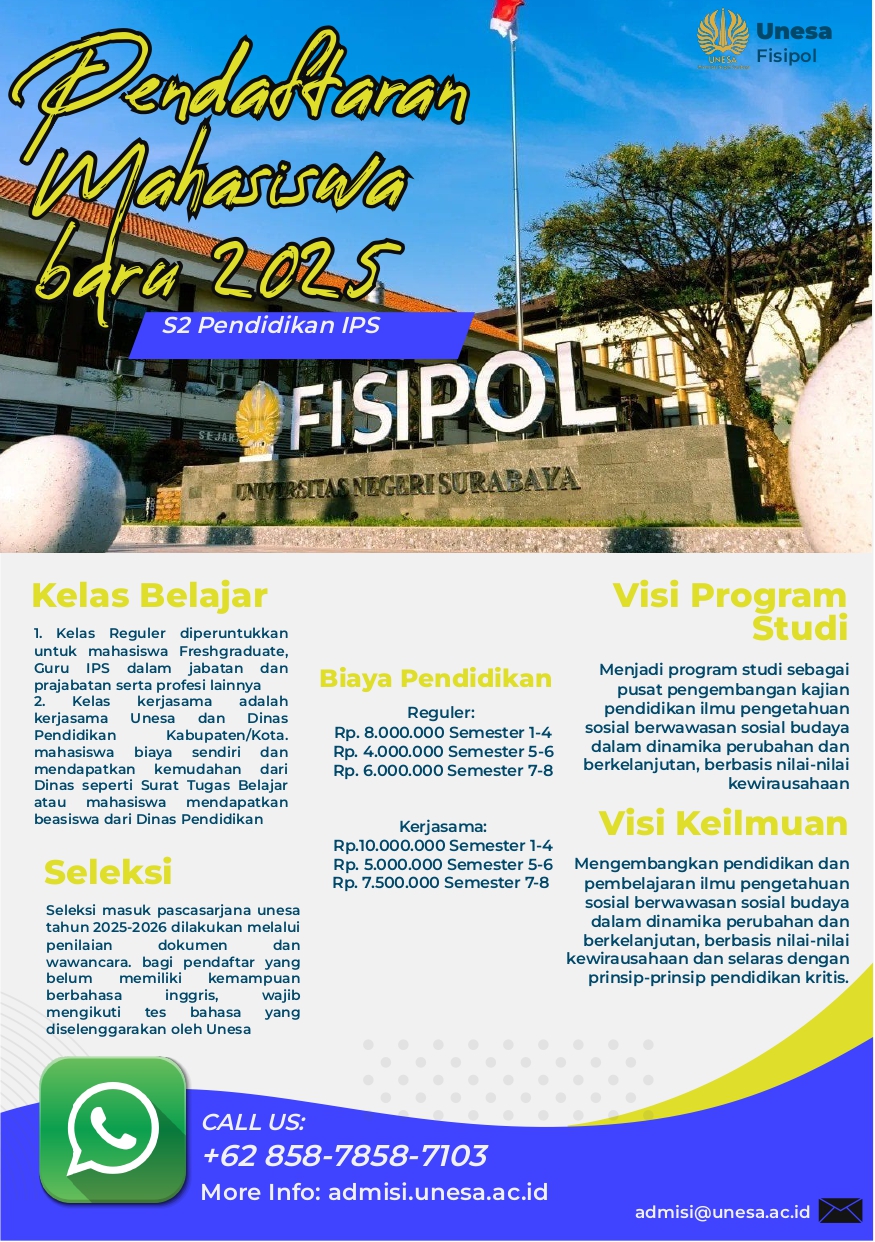 informasi penerimaan mahasiswa baru prodi s2 IPSProgram Magister Pendidikan IPS Pascasarjana Universitas Negeri Surabaya disele